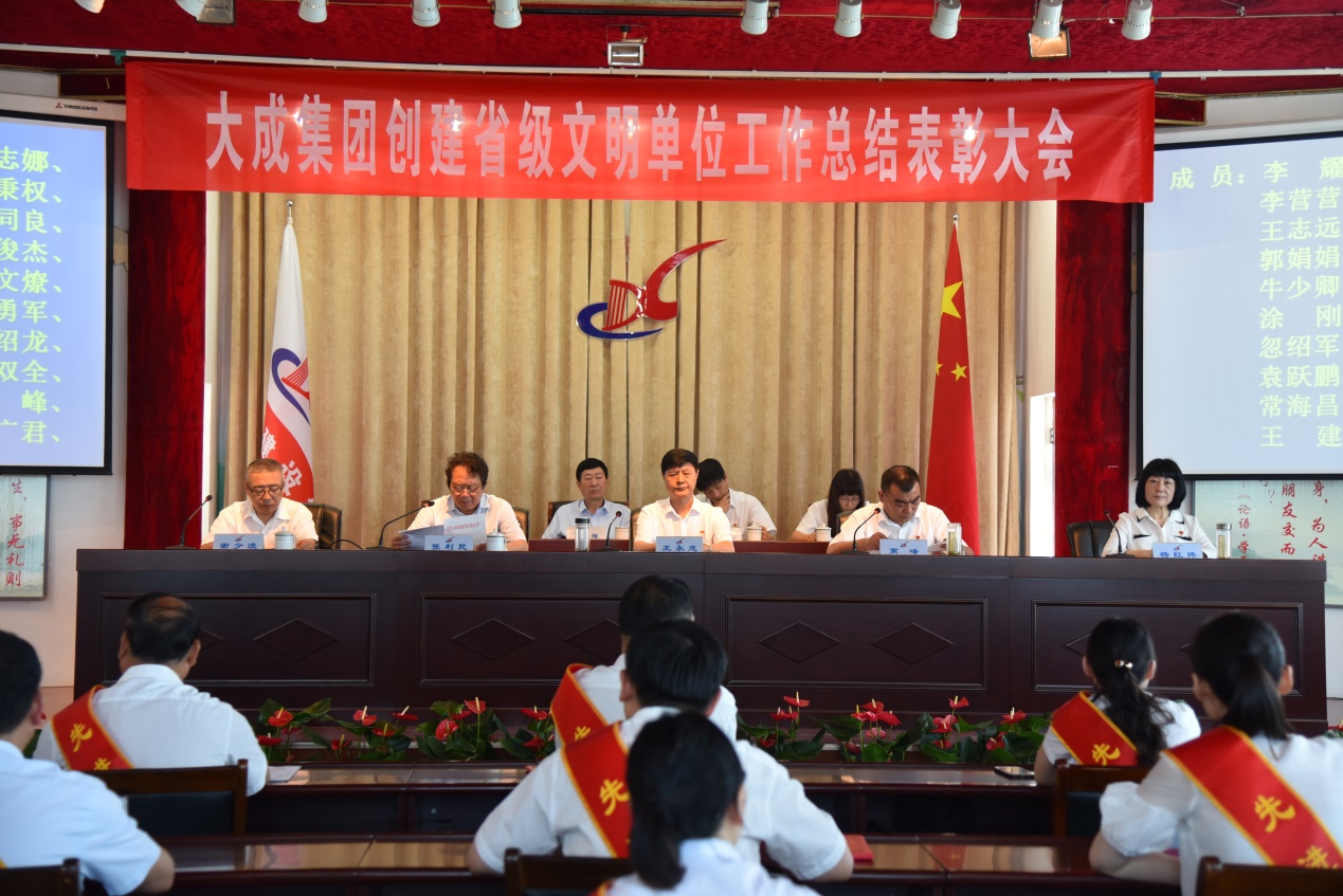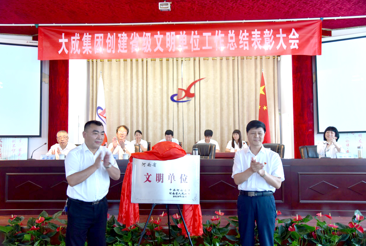 会上,党委委员、董事长、总经理高峰首先传达《中共河南省委、河南省人民政府关于表彰2017-2019年度河南省文明城市、文明村镇、文明单位的决定》,集团公司榜上有名。在大家热烈的掌声中,党委书记、名誉董事长王永志与党委委员、董事长、总经理高峰共同为省文明单位荣誉进行揭牌展示。会议对创建工作进行了总结,表彰了在创建工作中表现突出的14名先进个人和2个优秀团队,安排部署了下一步文明建设工作。 在大家热烈的掌声中,党委书记、名誉董事长王永志做了重要讲话。他指出,省级文明单位创建成果是集团公司具有里程碑意义的一件大喜事,是全体大成员工的自豪和荣耀,标志着集团公司文明建设工作进入了一个新的阶段。成绩来之不易,背后凝聚着全体干部员工群策群力,共创共建的心血和汗水。代表集团公司全体领导班子成员,向在创建工作中表现突出,受到表彰的先进个人和优秀团队表示热烈的祝贺!并向公司全体员工的艰辛努力,辛勤付出,表示衷心的感谢! 他要求:一是要肯定成绩,坚定信心。文明单位创建活动是提升员工综合素质的过程,也是改善企业形象,拓展企业功能,优化企业品质的重要抓手,意义重大。在创建过程中,全体员工思想高度统一,工作积极主动,密切配合,周密部署。公司党委坚持从实际出发,按照创建标准,齐抓共管,上下联动。抓重点、上硬件、治环境、构美化,开展了文明单位、处室评比,文明交通劝导,党员、团员进社区志愿服务等一系列活动。在诚信经营,文明施工,优质服务和施工现场标准化管理等方面做了大量富有成效的工作,集团公司面貌有了新的改观,员工素质有了较大的提升,各项工作取得了显著的进展。通过此次创建活动,我们在综合素质,文明程度等方方面面都要有大的提升。同时,也要密切配合市委,市政府创建文明城市活动,在日常生活中规范自己的言行举止。 二是要珍惜荣誉,发挥作用。省级文明单位是社会各界对企业“三个文明建设”工作的充分肯定,要做好行业的优秀代表。今天受到表彰的先进个人和优秀团队,在他们身上集中体现了“诚信、务实、创新、共赢”的大成精神。希望在今后的工作中戒骄戒躁,更好的发挥示范引领作用,取得更大的成绩。同时也希望广大员工要以他们为榜样,继续深化文明建设,凝聚文明力量,激发文明活力,以实际行动为企业的高质量发展贡献力量! 三是要提升标准,再创佳绩。要瞄准新目标,通过扎实有效的工作,向更高层次迈进,切不可有荣誉到手创建就结束的思想。增强危机感,紧迫感,在努力保持荣誉称号的同时,制定更高标准创建目标。创建工作领导小组要积极发挥好组织协调,统筹指导作用,充分调动全体员工的积极性和创造性,扎实做好年度复审工作。各党支部,各单位、部门要按照领导小组的统一安排,积极参与,密切配合,在做好文明建设各项工作的同时,深入推进施工现场安全生产、质量管理等各方面工作。 他强调,要始终把文明建设工作放在重要位置,在荣誉面前不停步,成绩面前能够冷静思考,保持谦虚谨慎的工作作风和持之以恒、团结拼搏的创建劲头。狠抓落实,增强企业凝聚力和向心力,力争各项工作再创佳绩,为谱写新时代大成更加出彩绚丽篇章作出新的、更大的贡献!