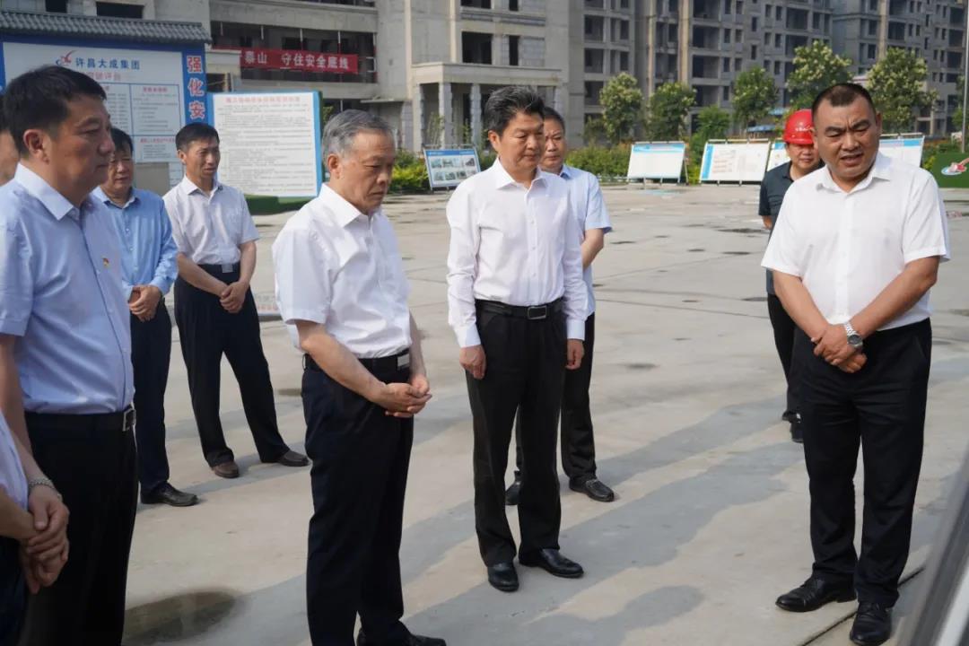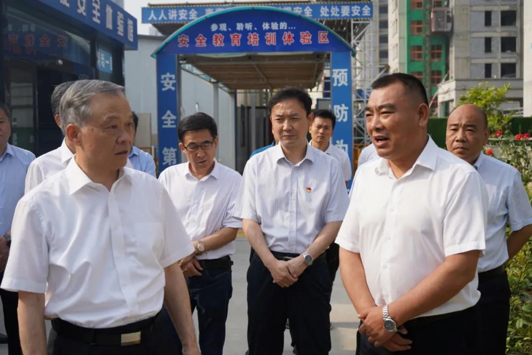 6月10日上午,许昌市市委书记胡五岳、常务副市长赵文峰一行莅临集团公司承揽施工的恒达和园项目现场,对安全生产工作进行调研指导。集团公司董事长、总经理高峰及东城区、市住建局有关领导同志接待调研并汇报相关工作。