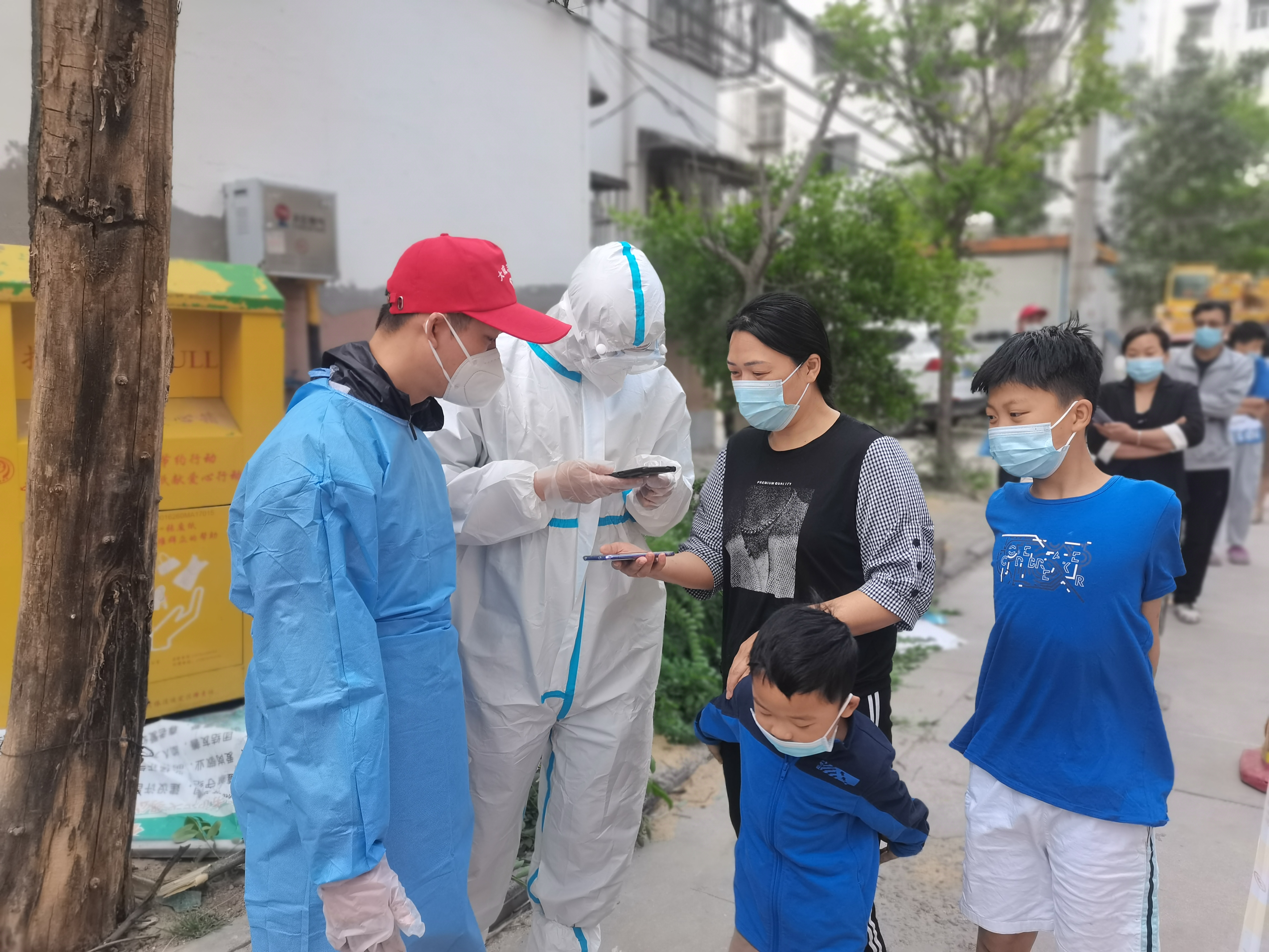 在物业分公司经理王秉权的带领下,全体员工齐上阵,与集团公司志愿者张启光、杜艳珍及家属、尚珍的家属,此外,还有热心业主丁琦、王金帅、汪弋涵、王燕、郝婉彤等。参加寿昌社区铁路家属院采集核酸的志愿者有集团公司志愿者冯广君、古永伟、刘彦晓、李晋生、任丛、宁炳旭、王致博、陈世泽、杨艺伟、王宾、王文伯、张豪楠、赵明月等。