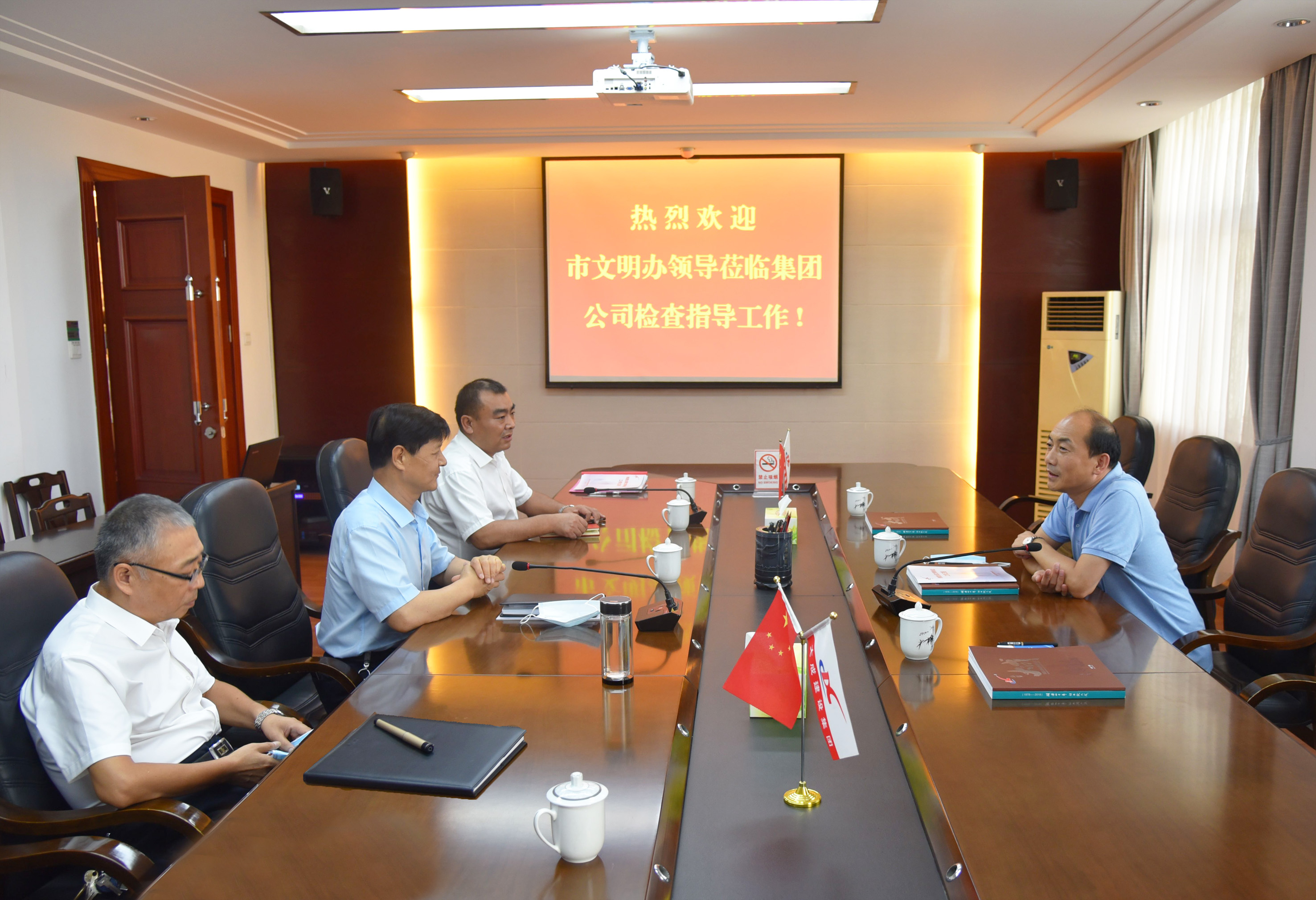 根据省、市文明委工作安排,受市文明办委托,日前,市文联副主席赵贡献一行莅临集团公司,对全国文明单位进行年度测评工作。党委书记、名誉董事长王永志,董事长、总经理高峰,纪委书记、党委办公室主任杨红玮,总经济师谢少波,监事会主席、工会主席张志娜等陪同。