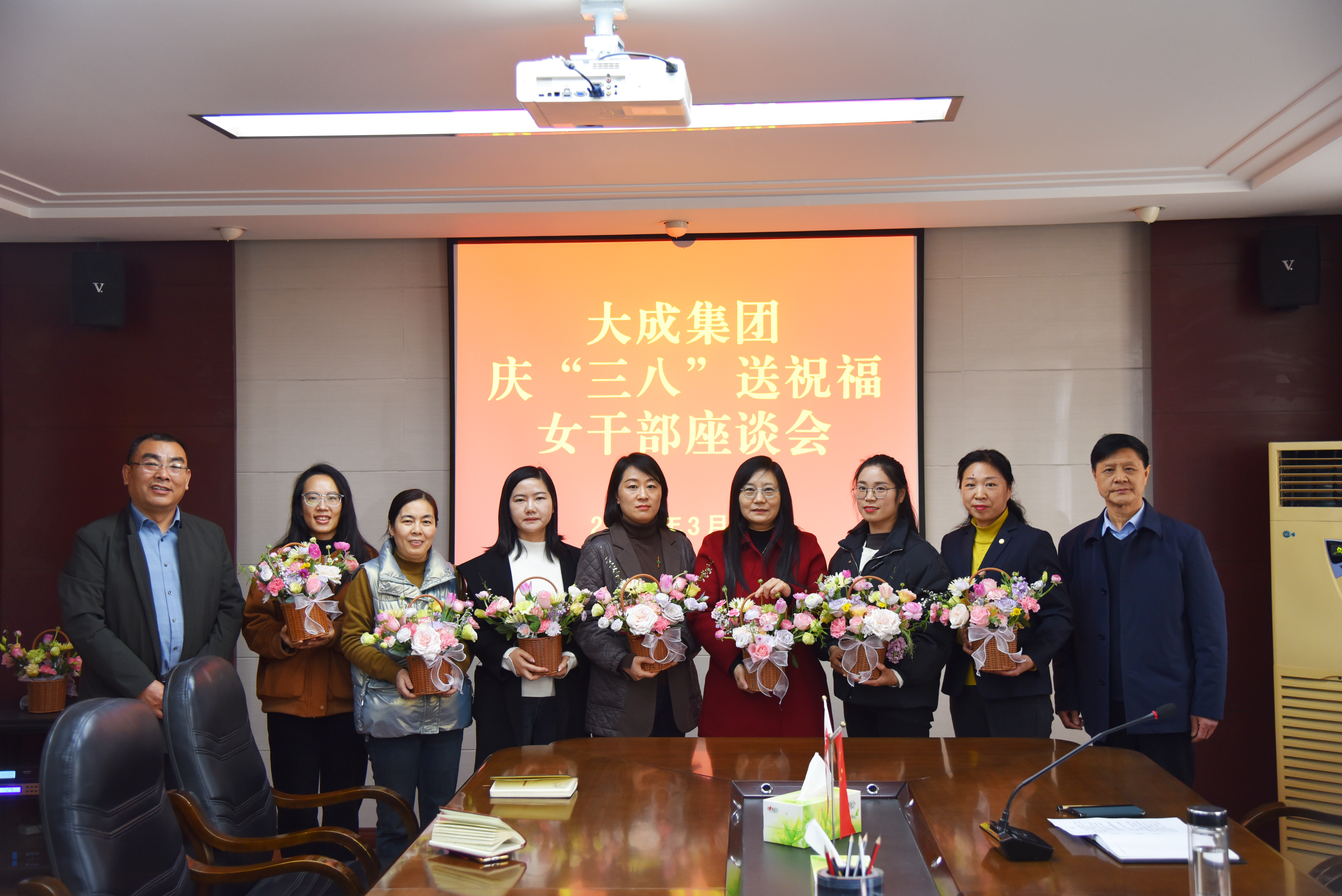 会上,张主席向女干部送上节日祝福,感谢集团公司多年来对女干部的关心和培养,为女干部提供展示才华的平台。新的一年已经开始,站在新的起跑线上,希望大家踔厉奋发,勇挑重担,展示巾帼不让须眉的豪迈。接着,高董致辞,过去的一年,广大女工用智慧和拼搏,坚守岗位,勇往直前,展现了谁说女子不如男的自信。2024年,希望广大女工干部能紧紧围绕各自的年度目标,以女性特有的才华和智慧推动家庭和事业的共同进步。随后,王书记为女同胞送上了鲜花和节日祝福,希望大家再接再厉,以更加务实的工作作风积极投身到工作中去。最后,安全生产科副科长王梦迪代表女干部作了表态发言,作为一名大成女工,要自觉地把个人前途、命运同公司发展紧密结合起来,为公司稳定发展排忧解难,出谋划策,以实际行动撑起大成公司的“半边天”,做新时代的风雨彩虹、铿锵玫瑰!